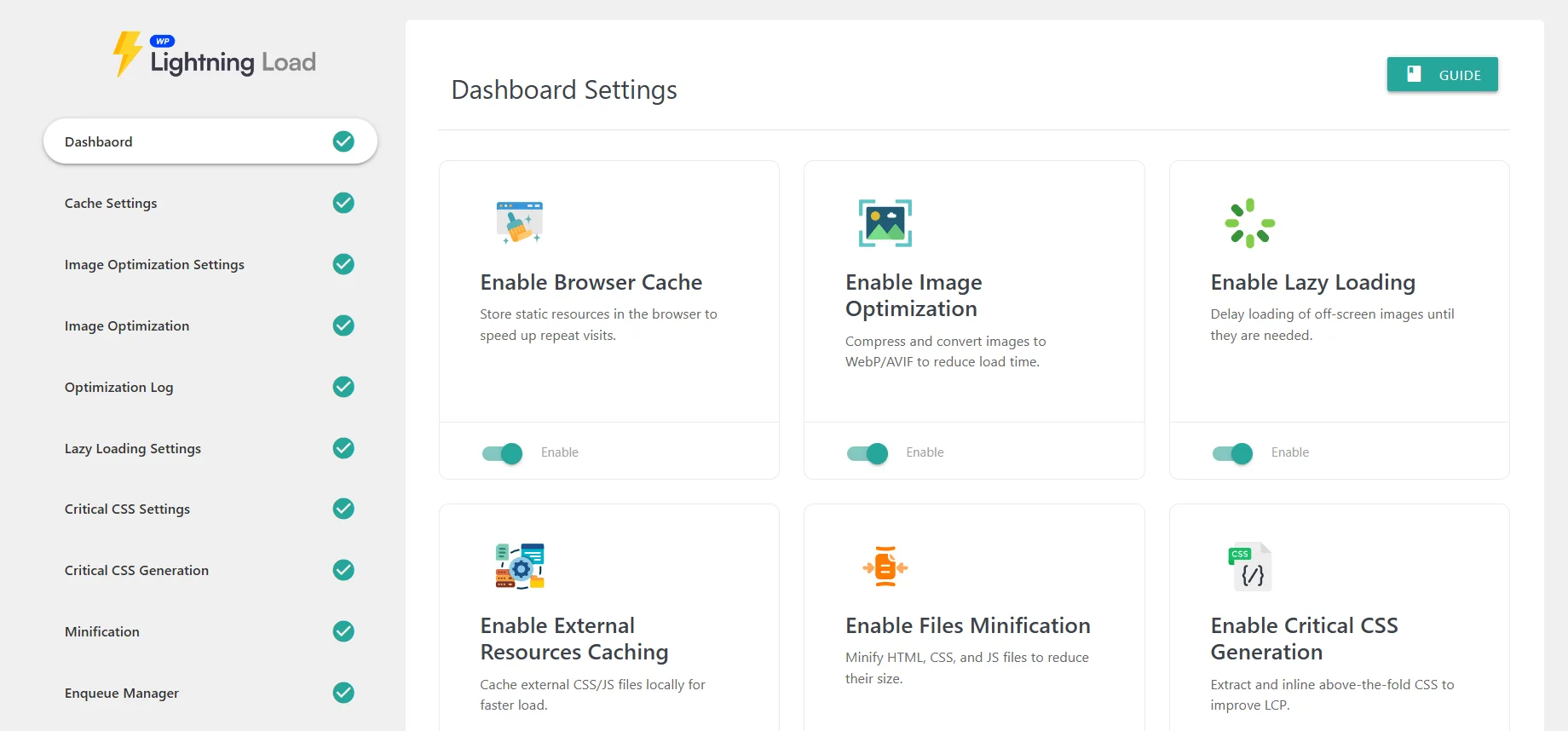 No complex interfaces or guesswork. WP Lightning Load’s clean, intuitive dashboard allows users of all skill levels to quickly enable features like lazy loading, WebP image optimization, critical CSS, asset minification, and more — with real-time performance indicators and smart recommendations.