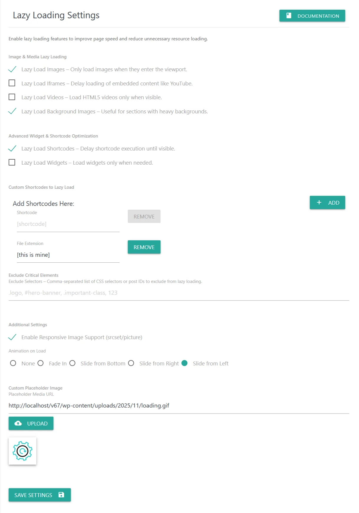Click Save Settings to apply your lazy loading configuration.
